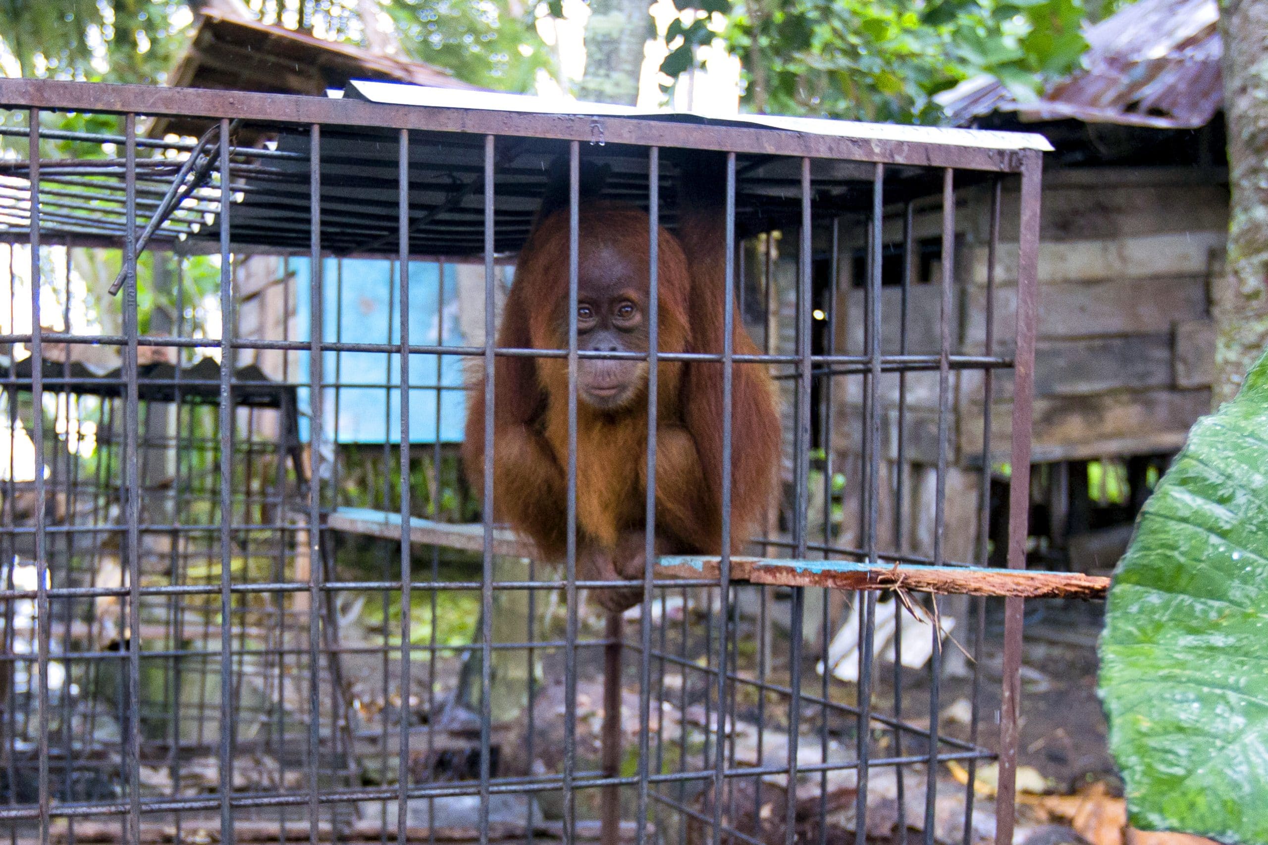 The illegal pet trade is one of the biggest threats to orangutans, and is comprised of two components: the domestic market and the international market. The practice of keeping pets is widespread in many parts of Indonesia, and wildlife markets are a feature of most large towns and cities. Although illegal, the keeping of primates as pets is common (CITES/GRASP, 2006), and these primates, most often orangutans and gibbons, will often be kept by families, in good conditions, in the same way people in western countries keep cats and dogs. In some circumstances, orangutans are also kept as status symbols, indicating an owner’s social status or wealth. Orangutans are also acquired by people for the sole reason of being illegal, and therefore a way for the owner to demonstrate that he or she is above the law. Investigations in Sumatra have shown that possession of orangutans is usually by local politicians, senior military and police staff, and many of the orangutans confiscated by the police and junior military will be used to curry favor with higher ranking officials, with 60% of all orangutans in rehabilitation centers on the island having come from such sources (CITES/GRASP, 2006).Like all great apes, orangutans have slow life histories, and for the first few years of their lives, are docile, sweet and gentle. However, at around 5 years of age, an orangutan already has the strength of an adult male human, and by maturity, will be as strong as 5-7 adult male humans, with an unpredictable and possibly aggressive nature that makes them unsuitable as pets. poached baby orangutan - (c) IARThe only way for an orangutan baby to be caught is for the mother to be shot, and the baby pried from her dead body. The route the baby then takes is entirely dependent on the intended form of trade, and how much money can be obtained. Almost every person living in a forested area of Kalimantan will know the value of a baby orangutan, so while poachers will sometimes keep orangutans for themselves, usually if the baby is kept by the poacher, or sold to a family in the same village, it is because the orangutan is a valuable commodity that can in time be sold or bartered (Nijman, 2005). Rather than being kept, it is more than likely that the baby will enter the illegal trade, usually sold to someone in another area, who will then sell it on for an increased price; the process become more and more professional and lucrative as it develops. The monetary value of an orangutan varies from place to place, and depends on whether it is being sold in an area where orangutans live in the wild. For example, in Kalimantan, orangutans can be priced between 243,000-1,007,000 Rupiah ($27-$112), while on the island of Java, orangutans will cost more, from 3,462,000 Rupiah ($385) (Nijman, 2005). Orangutans are also often acquired in exchange for other commodities, such as a wrist watch or an electronic appliance (Nijman, 2005).Orangutans are also often poached from the wild to form collections for zoos and wildlife parks throughout the country. The origins of the orangutans and other primates kept in these zoos are often uncertain, and records are not always kept, but it is likely few are captive born (Nijman, 2009). Conditions at these zoos are usually appalling, and have a high mortality rate.